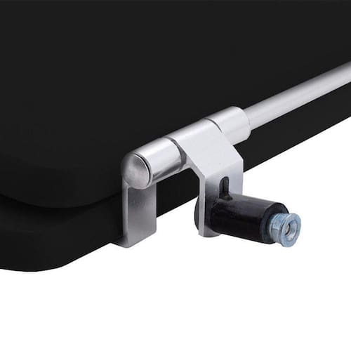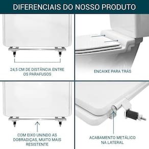 O encaixe do assento sanitário no vaso é feito por uma ferragem metálica que não oxida e não enferruja.