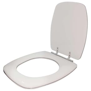 Este Assento Sanitário é produzido com base em MDF, camada de espuma macia e revestimento em vinil plástico brilhante. É muito macio e confortável. A ferragem é metálica em alumínio anodizado e não enferruja.