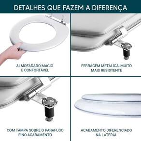 Itens inclusos: produto completo (tampa e assento com ferragem) e embalagem dupla reforçada.
