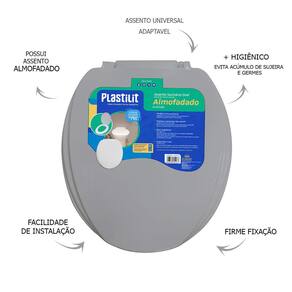 Contém: 1 - Assento Sanitário Almofadado Cinza Plastilit 2- 2x Parafusos e 2x Porcas de instalação