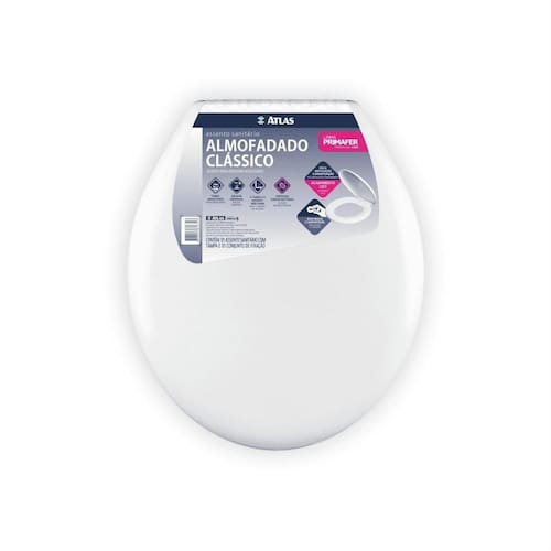 O Assento Sanitário Clássico possui sistema que deixa tampa e assento em pé, facilitando o uso e a limpeza. Com ação antibacteriana, maior higiene e proteção à saúde. Seu suspiro se localiza na parte traseira, proporcionando maior vida útil do produto. O assento é almofadado, preenchido com espuma de poliuretano (PU), o que deixa a peça macia e confortável. Seu acabamento é liso e sua tampa envolvente.