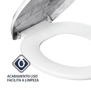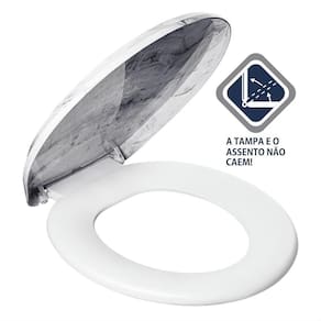 O Assento Sanitário Almofadado Decorado marmorizado Cinza, possui tampa com efeito mármore envolvente com design luxo, combina perfeitamente com ambientes marmorizados. Possui sistema que deixa tampa e assento em pé, facilitando o uso e a limpeza. Com ação antibacteriana, maior higiene e proteção à saúde proporcionando maior vida útil do produto. O assento possui acabamento liso e é preenchido com espuma de poliuretano (PU), o que deixa a peça macia e confortável.