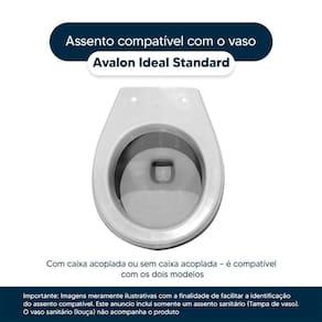 Este assento sanitário é compatível para uso em vaso sanitário Ideal Standard modelo Avalon com ou sem caixa acoplada.