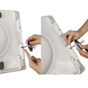 A Tampa de Vaso possui fácil instalação, basta conectar o pino na tampa antes de conectar ao vaso sanitário. Para soltar é simples, na tampa possui um botão, basta pressionar que o pino vai soltar rapidamente da tampa.