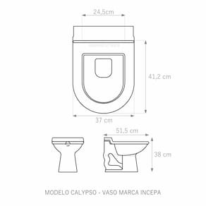 Assento Sanitário (tampa de vaso) fabricado em madeira MDF com pintura laqueada, com proteção raios UV, que garante excelente acabamento e durabilidade. Compatível com vasos (bacias/louças) sanitários com ou sem caixa acoplada. Tem calços de PVC instalados na tampa e no assento para proporcionar estabilidade ao uso, pois distribui o peso uniformemente sobre a louça sanitária. Montagem simples e fácil. Possui ferragem em alumínio anodizado que não enferruja/oxida e oferece muita resistência. O assento é acompanhado por parafusos para instalação. Embalagem dupla reforçada garante o recebimento do produto totalmente protegido. Especificações: - Dimensões da caixa: largura: 51,50cm. Altura: 4,00cm comprimento: 38,00cm - Peso do produto: 1,98kg - Acabamento: brilhante - Uso: este assento é adequado para uso na louça Incepa modelo Calypso - Garantia: 3 meses - Itens inclusos: Tampa e assento com calços de PVC, ferragem inoxidável, embalagem duplamente reforçada. Contém todos os parafusos e encaixes para instalação, sendo necessária somente uma chave de fenda para instalar o produto na louça sanitária. Instalação:posicione o produto, devidamente centralizado, em cima do vaso sanitário. Sem desmontar a ferragem, insira as buchas de borracha dentro dos furos da bacia sanitária. Utilizando uma chave de fenda, aperte o parafuso no sentido horário até que o assento esteja firme no vaso. Manutenção: recomendamos a limpeza periódica com pano levemente umedecido com sabão neutro. Não usar esponjas abrasivas ou palha de aço nem qualquer tipo de produto químico. Marca: LOJAROCCA