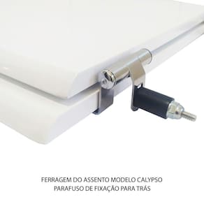 Assento Sanitário (tampa de vaso) fabricado em madeira MDF com pintura laqueada, com proteção raios UV, que garante excelente acabamento e durabilidade. Compatível com vasos (bacias/louças) sanitários com ou sem caixa acoplada. Tem calços de PVC instalados na tampa e no assento para proporcionar estabilidade ao uso, pois distribui o peso uniformemente sobre a louça sanitária. Montagem simples e fácil. Possui ferragem em alumínio anodizado que não enferruja/oxida e oferece muita resistência. O assento é acompanhado por parafusos para instalação. Embalagem dupla reforçada garante o recebimento do produto totalmente protegido. Especificações: - Dimensões da caixa: largura: 51,50cm. Altura: 4,00cm comprimento: 38,00cm - Peso do produto: 1,98kg - Acabamento: brilhante - Uso: este assento é adequado para uso na louça Incepa modelo Calypso - Garantia: 3 meses - Itens inclusos: Tampa e assento com calços de PVC, ferragem inoxidável, embalagem duplamente reforçada. Contém todos os parafusos e encaixes para instalação, sendo necessária somente uma chave de fenda para instalar o produto na louça sanitária. Instalação:posicione o produto, devidamente centralizado, em cima do vaso sanitário. Sem desmontar a ferragem, insira as buchas de borracha dentro dos furos da bacia sanitária. Utilizando uma chave de fenda, aperte o parafuso no sentido horário até que o assento esteja firme no vaso. Manutenção: recomendamos a limpeza periódica com pano levemente umedecido com sabão neutro. Não usar esponjas abrasivas ou palha de aço nem qualquer tipo de produto químico.