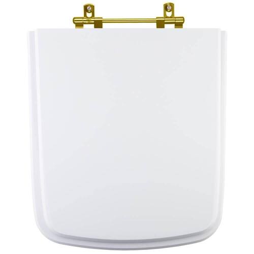 Assento Sanitário Clean Branco para vaso Deca com dourada é a escolha perfeita para seu banheiro trazendo beleza e praticidade. Este produto Assento Sanitário é produzido em MDF com diversas camadas de pintura laqueada, com acabamento brilhante e ferragem metálica dourada que não enferruja. É compatível para uso em vaso sanitário com ou sem caixa acoplada. Instalação rápida e fácil, acompanham os parafusos de fixação e basta apenas uma chave de fenda para montar. Entrega garantida e rastreada com embalagem dupla reforçada. Cor: Branco Gelo = Branco Distância entre centros dos furos da louça: 15 cm Acabamento: brilhante Dicas: Itens inclusos: assento e tampa em madeira MDF com pintura laqueada, ferragem metálica e embalagem dupla reforçada. Limpeza: recomenda-se a limpeza com pano úmido e sabão neutro e não utilizar produtos abrasivos ou químicos. Instalação: Sem desmontar o produto, posicione sobre o vaso sanitário e encaixe os dois parafusos com as borrachas pretas dentro dos furos do vaso. Aperte com a chave de fenda no sentido horário até ficar firme. Importante: este anúncio inclui somente o produto conforme descrição acima. Todos os elementos decorativos das fotos não estão inclusos. Observação: O código 6LPF gravado na louça sanitária corresponde ao fluxo de água de uma descarga e não indica o modelo da mesma. Ean: 7899983617038