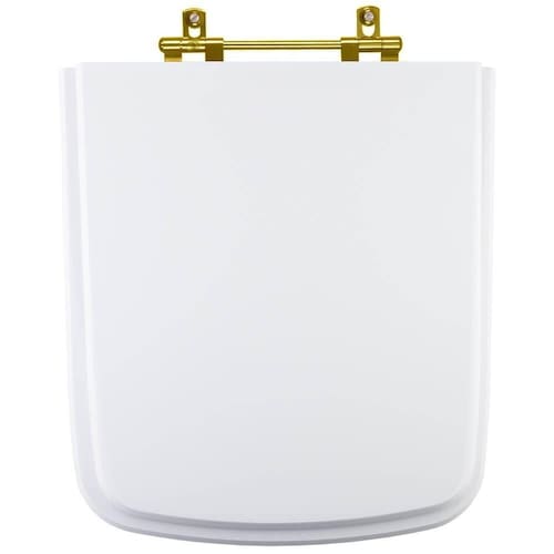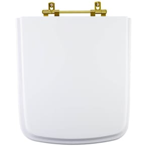 Assento Sanitário Clean Branco para vaso Deca com dourada é a escolha perfeita para seu banheiro trazendo beleza e praticidade. Este produto Assento Sanitário é produzido em MDF com diversas camadas de pintura laqueada, com acabamento brilhante e ferragem metálica dourada que não enferruja. É compatível para uso em vaso sanitário com ou sem caixa acoplada. Instalação rápida e fácil, acompanham os parafusos de fixação e basta apenas uma chave de fenda para montar. Entrega garantida e rastreada com embalagem dupla reforçada. Cor: Branco Gelo = Branco Distância entre centros dos furos da louça: 15 cm Acabamento: brilhante Dicas: Itens inclusos: assento e tampa em madeira MDF com pintura laqueada, ferragem metálica e embalagem dupla reforçada. Limpeza: recomenda-se a limpeza com pano úmido e sabão neutro e não utilizar produtos abrasivos ou químicos. Instalação: Sem desmontar o produto, posicione sobre o vaso sanitário e encaixe os dois parafusos com as borrachas pretas dentro dos furos do vaso. Aperte com a chave de fenda no sentido horário até ficar firme. Importante: este anúncio inclui somente o produto conforme descrição acima. Todos os elementos decorativos das fotos não estão inclusos. Observação: O código 6LPF gravado na louça sanitária corresponde ao fluxo de água de uma descarga e não indica o modelo da mesma.