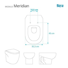 Instalação Simples e Rápida: Com todos os parafusos e componentes necessários inclusos, a instalação é rápida e descomplicada. Seu novo assento estará pronto para uso em questão de minutos. Desenvolvido especificamente para o modelo Meridian da marca Roca, com ou sem caixa acoplada, proporciona um encaixe perfeito, oferecendo estabilidade e conforto durante o uso.