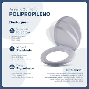 O sistema soft close é um diferencial notável deste assento, eles garantem um fechamento suave, evitando batidas indesejadas. Isso significa que a tampa e o assento descerão lentamente quando soltos (sem bater).