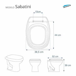 Instalação Simples e Rápida: Com todos os parafusos e componentes necessários inclusos, a instalação é rápida e descomplicada. Seu novo assento estará pronto para uso em questão de minutos. Desenvolvido especificamente para o modelo Sabatini da marca Icasa, com ou sem caixa acoplada, proporciona um encaixe perfeito, oferecendo estabilidade e conforto durante o uso.