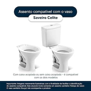 Compatível com o modelo Saveiroda marca Celite, este assento se encaixa perfeitamente no vaso sanitário.