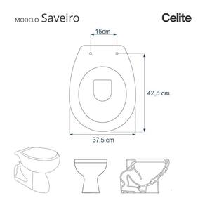 Compatível com o modelo Saveiroda marca Celite, este assento se encaixa perfeitamente no vaso sanitário.