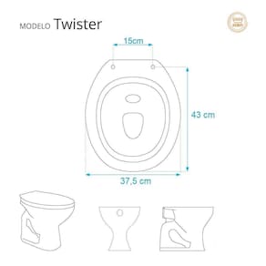Compatível com o modelo Twisterda marca Hervy, este assento se encaixa perfeitamente no vaso sanitário.