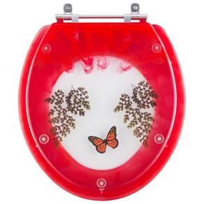 Tampa de Vaso Sanitário Poliéster Convencional Oval com exclusiva decoração de Avencas e Borboleta, marmorizado Vermelho para bacia de vários fabricante de louças é a escolha perfeita para seu banheiro trazendo beleza e praticidade.