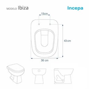 Compatível com o vaso sanitário Incepa modelo Ibiza com ou sem caixa acoplada.