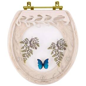O Assento Sanitário Decorado Oval Convencional Bege Claro Com Borboleta Azul Com Ferragem Dourada é a opção ideal para quem busca combinar funcionalidade com elegância em seu banheiro.