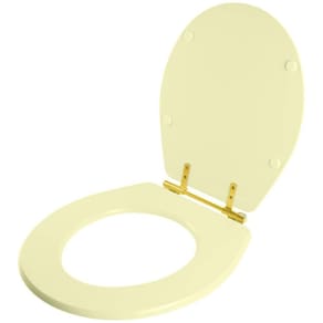 Itens inclusos: assento e tampa em madeira MDF com pintura laqueada, ferragem metálica na cor dourada e embalagem dupla reforçada.