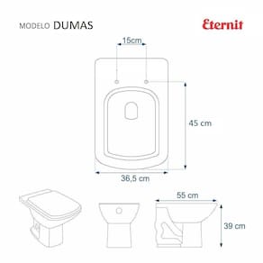 Assento Sanitário Dumas Branco para vaso Eternit. Conforto, qualidade e elegância para o seu banheiro. Este Assento Sanitário é produzido em MDF com diversas camadas de pintura laqueada, com acabamento brilhante e ferragem metálica que não enferruja. É compatível para uso em vasos sanitários com ou sem caixa acoplada. É muito rápido e fácil instalar, acompanha os parafusos de fixação e basta apenas uma chave de fenda para instalar no vaso. Entrega garantida e rastreada com embalagem dupla reforçada. Cor: Branco. Distância entre meio dos furos da louça: 15 cm. Acabamento: brilhante. Dicas: Itens inclusos: assento e tampa em madeira MDF com pintura laqueada, ferragem metálica e embalagem dupla reforçada. Limpeza: recomenda-se a limpeza com pano úmido e sabão neutro e não utilizar produtos abrasivos ou químicos. Instalação: Sem desmontar o produto, posicione sobre os furos do vaso sanitário e encaixe os dois parafusos com as borrachas pretas dentro dos furos do mesmo. Aperte com a chave de fenda no sentido horário até ficar firme. Importante: este anúncio inclui somente o produto conforme descrição acima. Todos os elementos decorativos das fotos não estão inclusos. Observação: O código 6LPF gravado na louça sanitária corresponde ao fluxo de água de uma descarga e não indica o modelo da mesma.