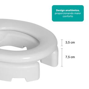 ? BENEFÍCIOS ? Facilita o uso do vaso sanitário – Indicado para quem tem dificuldades de mobilidade. ? Almofadado e confortável – Superfície macia para mais bem-estar. ? Trava de segurança resistente – Garante estabilidade e evita deslocamentos. ? Compatível com louças ovais e especiais – Adapta-se à maioria dos vasos sanitários. ? Reforçado e seguro – Suporta até 150 kg e possui fixação firme. ? Higienização facilitada – Superfície lisa e abertura frontal para melhor limpeza.