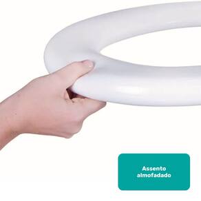 DESTAQUES DO PRODUTO 🔹 Maior conforto – Almofadado e com elevação de 11 cm para reduzir o esforço ao sentar e levantar. 🔹 Fixação segura – Conjunto reforçado com eixo de alumínio e parafusos de nylon. 🔹 Ajuste perfeito – Compatível com louças ovais e mais de 30 modelos de louças especiais. 🔹 Superfície lisa e resistente – Evita o acúmulo de sujeira e facilita a limpeza. 🔹 Proteção contra fungos e bactérias – Segurança extra para o usuário. 🔹 Uso seguro – Indicado para uso residencial. Para estabelecimentos públicos, seguir a norma ABNT NBR 9050:2015.