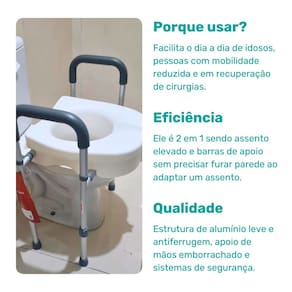 Desenvolvido para facilitar o dia a dia de idosos, pessoas com mobilidade reduzida ou em recuperação de cirurgias, ele eleva a altura do vaso sanitário e proporciona um apoio firme para maior autonomia e confiança ao sentar e levantar.