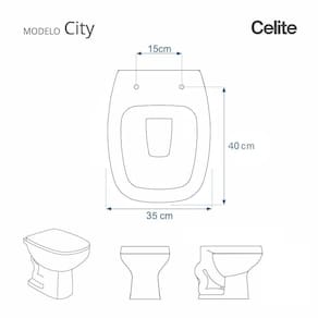 Este assento sanitário é compatível para uso em vaso sanitário Celite modelo City com ou sem caixa acoplada.