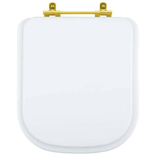 Assento Sanitário Gap Branco para vaso Roca Com Ferragem Dourada é a escolha perfeita para seu banheiro trazendo beleza e praticidade. Esta Tampa de Vaso é produzida em MDF com pintura laqueada, acabamento brilhante e ferragem dourada que não enferruja. É compatível para uso em vasos sanitários com ou sem caixa acoplada. É muito rápido e fácil instalar, acompanha parafusos de fixação e com apenas uma chave de fenda é possível instalar no vaso sanitário. Entrega garantida e rastreada com embalagem dupla reforçada.