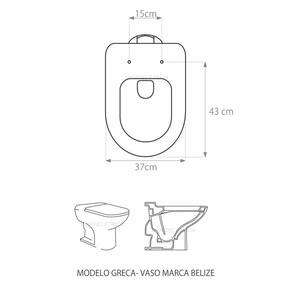 Especificações: - Dimensões da caixa: largura: 50,00cm, altura: 4,00cm, comprimento: 40,00cm - Acabamento: brilhante - Uso: adequado para uso na louça Belize modelo Greca - Garantia: 3 meses - Itens inclusos: tampa e assento, parafusos e embalagem duplamente reforçada