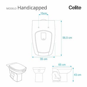 Compatível para uso em vaso sanitário Celite (PNE) modelo Handicapped com ou sem caixa acoplada.
