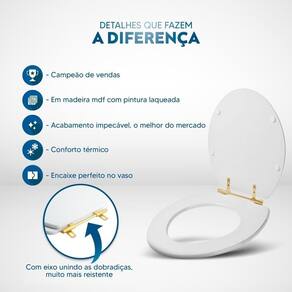 Durabilidade e Resistência: Fabricado em MDF com camadas de pintura laqueada, este assento oferece não apenas beleza, mas também conforto térmico e alta resistência. Seu acabamento impecável adiciona um toque de classe ao seu banheiro.