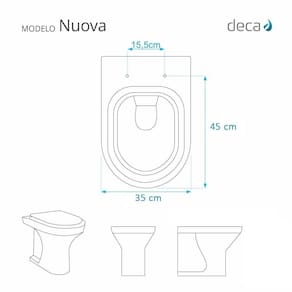 Este assento sanitário é compatível para uso em vaso sanitário Deca modelo Nuova com ou sem caixa acoplada (é compatível com os dois tipos de vasos).