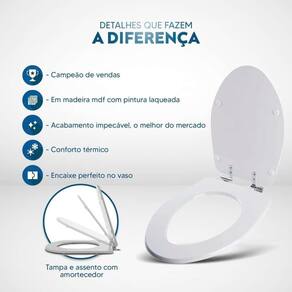 Durabilidade e Resistência: Fabricado em MDF com camadas de pintura laqueada, este assento oferece não apenas beleza, mas também conforto térmico e alta resistência. Seu acabamento impecável adiciona um toque de classe ao seu banheiro.
