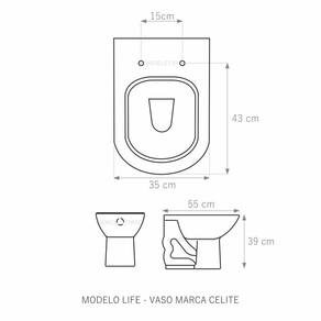 Assento Sanitário Life Bege Tampa Para Vaso Celite Almofadado Bege Claro Assento Sanitário Almofadado tampa de vaso fabricado em polipropileno e polietileno especial. Resistente, durável, com excelente acabamento e design sofisticado. Assento macio, arco almofadado.Devido a sua composição este produto é totalmente impermeável e de fácil limpeza e higienização. Compatível com vasos sanitários de descarga convencional e também vasos com caixa acoplada. Acabamento brilhante no tampo e no assento. Fixação regulável para o perfeito encaixe na louça sanitária. Fácil limpeza, é higiênico e não acumula sujeira. O assento é acompanhado por parafusos para instalação e acabamentos. Embalagem dupla reforçada garante o recebimento do produto totalmente protegido. Especificações: - Dimensões da caixa: largura: 50,00cm. Altura: 4,00cm comprimento: 40,00cm - Acabamento: brilhante - Uso: este assento é adequado para uso na louça Celite modelo Life - Garantia: 3 meses - Itens inclusos: Tampa e assento, parafusos e embalagem duplamente reforçada. Instalação: posicione o produto, devidamente centralizado, em cima do vaso sanitário. Encaixe os parafusos e encaixe as porcas. Aperte até que o assento esteja firme no vaso. Manutenção: recomendamos a limpeza periódica com pano levemente umedecido com sabão neutro. Não usar esponjas abrasivas ou palha de aço nem qualquer tipo de produto químico.