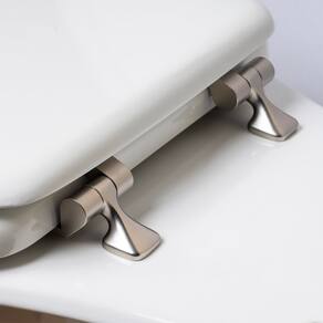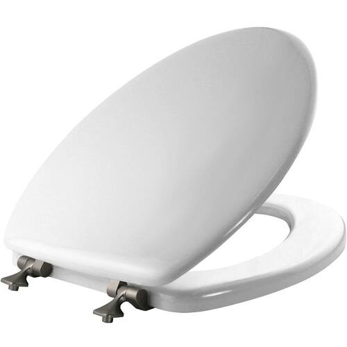 MAYFAIR Assento sanitário 1844BNA 000 com dobradiças de níquel escovado nunca se soltará, alongado, branco - níquel escovado