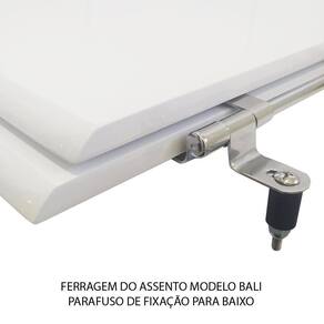 Assento Sanitário Laminado Bali Branco Vaso Incepa O Assento Sanitário Laminado Bali Branco Vaso Incepa é fabricado em madeira MDF revestido com laminado poliéster, proporcionando um excelente acabamento fosco e texturizado. Esse revestimento especial garante uma durabilidade maior ao produto, tornando-o impermeável e de fácil limpeza e higienização. Compatível com vasos sanitários da linha Incepa modelo Bali, esse assento é versátil e pode ser utilizado em vasos com ou sem caixa acoplada. Possui calços de PVC instalados na tampa e no assento, evitando a entrada de água e garantindo que não se soltem. A montagem é simples e fácil, e o assento acompanha parafusos para instalação. Sua ferragem em alumínio anodizado não enferruja e oferece muita resistência. Além disso, o assento é acompanhado por uma embalagem dupla reforçada, garantindo que o produto seja recebido totalmente protegido. Especificações técnicas: - Dimensões da caixa: largura: 51,50cm, altura: 4,00cm, comprimento: 38,00cm - Peso do produto: 1,98kg - Acabamento: fosco e texturizado - Uso: adequado para uso na louça Incepa modelo Bali - : 3 meses - Itens inclusos: tampa e assento com calços de PVC, ferragem inoxidável, embalagem duplamente reforçada. Contém todos os parafusos e encaixes para instalação, sendo necessária somente uma chave de fenda para instalar o produto na louça sanitária. Instruções de instalação: 1. Posicione o produto, devidamente centralizado, em cima do vaso sanitário. 2. Sem desmontar a ferragem, insira as buchas de borracha dentro dos furos da bacia sanitária. 3. Utilizando uma chave de fenda, aperte o parafuso no sentido horário até que o assento esteja firme no vaso. Manutenção: Recomendamos a limpeza periódica do assento com um pano levemente umedecido com sabão neutro. Evite o uso de esponjas abrasivas ou palha de aço, bem como qualquer tipo de produto químico. O Assento Sanitário Laminado Bali Branco Vaso Incepa é a escolha perfeita para quem busca durabilidade, facilidade de limpeza e um acabamento fosco e texturizado de alta qualidade. Adquira já o seu e garanta mais conforto e beleza para o seu banheiro! 1. Esse assento é compatível com vasos sanitários com caixa acoplada? Sim, o Assento Sanitário Laminado Bali Branco Vaso Incepa é compatível tanto com vasos sanitários com caixa acoplada quanto com vasos sem caixa acoplada. 2. Qual é o material do assento? O assento é fabricado em madeira MDF revestido com laminado poliéster, o que garante durabilidade e facilidade na limpeza. 3. A ferragem enferruja com o tempo? Não, a ferragem do assento é feita em alumínio anodizado, um material resistente que não enferruja. 4. Preciso comprar parafusos separadamente para a instalação? Não, o assento acompanha parafusos para instalação, tornando o processo mais prático e fácil. 5. Qual é a do produto? O Assento Sanitário Laminado Bali Branco Vaso Incepa possui de 3 meses. Garanta agora mesmo o Assento Sanitário Laminado Bali Branco Vaso Incepa e tenha um produto de alta qualidade e durabilidade em seu banheiro!