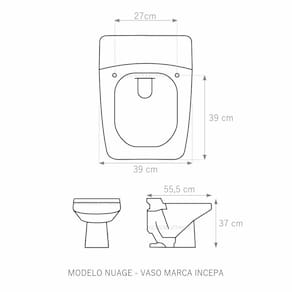 Assento Sanitário (tampa de vaso) fabricado em madeira MDF com pintura laqueada, com proteção raios UV, que garante excelente acabamento e durabilidade. Compatível com vasos (bacias/louças) sanitários com ou sem caixa acoplada. Tem calços de PVC instalados na tampa e no assento para proporcionar estabilidade ao uso, pois distribui o peso uniformemente sobre a louça sanitária. Montagem simples e fácil. Possui ferragem em alumínio anodizado que não enferruja/oxida e oferece muita resistência. O assento é acompanhado por parafusos para instalação. Embalagem dupla reforçada garante o recebimento do produto totalmente protegido. Especificações: - Dimensões da caixa: largura: 51,50cm. Altura: 4,00cm comprimento: 38,00cm - Peso do produto: 1,98kg - Acabamento: brilhante - Uso: este assento é adequado para uso na louça Incepa modelo Nuage - Garantia: 3 meses - Itens inclusos: Tampa e assento com calços de PVC, ferragem inoxidável, embalagem duplamente reforçada. Contém todos os parafusos e encaixes para instalação, sendo necessária somente uma chave de fenda para instalar o produto na louça sanitária. Instalação:posicione o produto, devidamente centralizado, em cima do vaso sanitário. Sem desmontar a ferragem, insira as buchas de borracha dentro dos furos da bacia sanitária. Utilizando uma chave de fenda, aperte o parafuso no sentido horário até que o assento esteja firme no vaso. Manutenção: recomendamos a limpeza periódica com pano levemente umedecido com sabão neutro. Não usar esponjas abrasivas ou palha de aço nem qualquer tipo de produto químico.