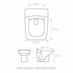 Assento Sanitário tampa de vaso fabricado em madeira MDF com pintura laqueada, com proteção raios UV, que garante excelente acabamento e durabilidade. Compatível com vasos bacias/louças sanitários com ou sem caixa acoplada. Tem calços de PVC instalados na tampa e no assento para proporcionar estabilidade ao uso, pois distribui o peso uniformemente sobre a louça sanitária. Montagem simples e fácil. Possui ferragem em alumínio anodizado que não enferruja/oxida e oferece muita resistência. O assento é acompanhado por parafusos para instalação. Embalagem dupla reforçada garante o recebimento do produto totalmente protegido. Especificações: - Dimensões da caixa: largura: 49,50cm. Altura: 4,00cm comprimento: 39,50cm - Peso do produto: 1,98kg - Acabamento: brilhante - Uso: este assento é adequado para uso na louça Incepa modelo Nuage - : 3 meses - Itens inclusos: Tampa e assento em MDF com calços de PVC, ferragem inoxidável, embalagem duplamente reforçada. Contém todos os parafusos e encaixes para instalação, sendo necessária somente uma chave de fenda para instalar o produto na louça sanitária. Instalação: posicione o produto, devidamente centralizado, em cima do vaso sanitário. Sem desmontar a ferragem, insira as buchas de borracha dentro dos furos da bacia sanitária. Encaixe os parafusos e posicione as porcas. Utilizando uma chave de fenda, aperte o parafuso no sentido horário até que o assento esteja firme e fixo no vaso. Manutenção: recomendamos a limpeza periódica com pano levemente umedecido com sabão neutro. Não usar esponjas abrasivas ou palha de aço nem qualquer tipo de produto químico. Marca: Não Informado Ean: 7891467005928