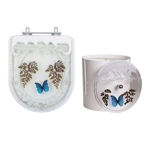Assento Sanitário Para Louças Duna E Lixeira Decoradas Kit Assento Sanitário Para Louças Duna Branco Decorado com Borboleta Azul e Avencas + Lixeira Branca decorada com Borboleta Azul e Avencas é a escolha perfeita para completar seu banheiro. Com acabamento diferenciado, este conjunto combina perfeitamente com o banheiro. Assento Sanitário Decorado
