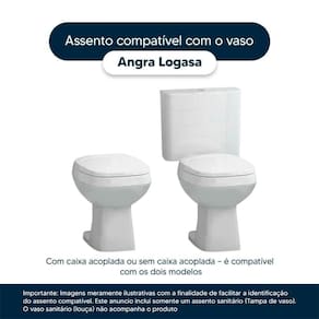 Compatível com o vaso sanitário Logasa modelo Angra com ou sem caixa acoplada.