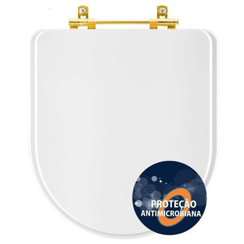 O Assento Sanitário Poliester Antibacteriano Carrara Branco para vaso Deca com Ferragem Dourada é a escolha definitiva para elevar o padrão de higiene e sofisticação do seu banheiro!