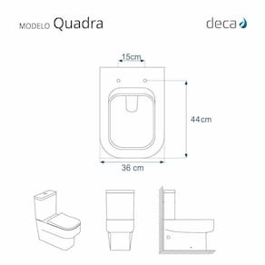 Compatível com o vaso sanitário Deca modelo Quadra com ou sem caixa acoplada.