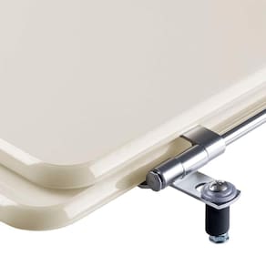 O encaixe do assento sanitário no vaso é feito por uma ferragem metálica que não oxida e não enferruja.