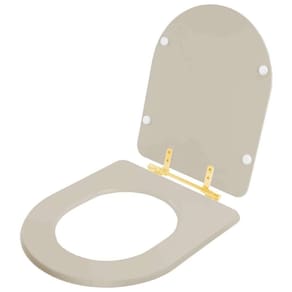 Assento Sanitario Poliester Carrara Bege Saara Para Vaso Deca Com Ferragem Dourada