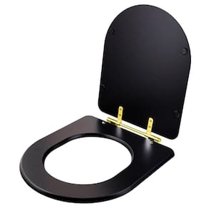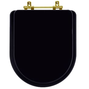 Assento Sanitário Poliéster Carrara Preto Fosco para vaso Deca Com Ferragem Dourada