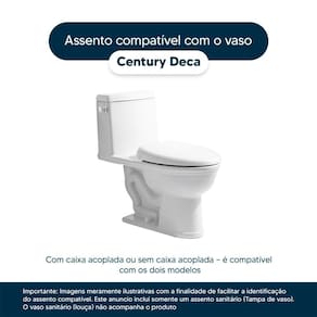 Compatível com o vaso sanitário Deca modelo Century com ou sem caixa acoplada.