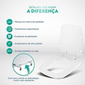 * Conteúdo da Embalagem: Assento sanitário, parafusos de fixação e instruções de instalação.