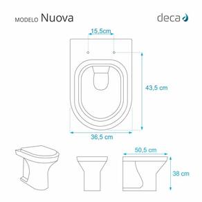 Assento para vaso sanitário em resina de poliéster, produto de excelente durabilidade com acabamento de alto brilho. É o assento sanitário de maior beleza com resistência e estética inigualáveis. A ferragem soft close tem um amortecedor para descida lenta da tampa e do assento o que confere característica de sofisticação e segurança ao produto. Devido a sua composição maciça em resina de poliéster este produto é totalmente impermeável e de fácil limpeza e higienização. Contêm aditivos contra os efeitos de raios ultravioletas, que evitam a distorção das cores com o passar do tempo. É indicado mesmo nas mais severas condições de uso, como hotéis, bares e restaurantes. Compatível com vasos sanitários de descarga convencional e também vasos com caixa acoplada. Tem 10 calços de PVC instalados na tampa e no assento para proporcionar estabilidade ao distribuir o peso uniformemente sobre a louça sanitária. Embalagem dupla reforçada garante a recepção do produto em sua residência totalmente intacto e protegido. Manutenção: recomendamos a limpeza periódica com água e sabão neutro. Não usar produtos abrasivos, esponjas e/ou palhas de aço, nem qualquer tipo de produto químico. Especificações: - Dimensões Da Caixa: Largura: 51,50cm, Altura: 4,00cm, Comprimento: 39,00cm - Peso Do Produto: 2,75kg - Código Do Produto: 700134 - Cor: Branco - Acabamento: brilhante - Uso: este assento é adequado para uso na bacia Deca modelo Nuova - Marca: Pontto Lavabo - Garantia: 12 meses - Itens inclusos: Tampa e assento com calços de PVC, ferragem inoxidável, embalagem duplamente reforçada. Contém todos os parafusos e encaixes para instalação, sendo necessária somente uma chave de fenda para instalar o produto na bacia sanitária. - Instalação: posicione o produto, devidamente centralizado, em cima do vaso sanitário. Sem desmontar a ferragem, insira as buchas de borracha dentro dos furos da bacia sanitária. Utilizando uma chave de fenda, aperte o parafuso no sentido horário até que o assento esteja firme no vaso.