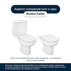 Instalação Simples e Rápida: Com todos os parafusos e componentes necessários inclusos, a instalação é rápida e descomplicada. Seu novo assento estará pronto para uso em questão de minutos. Desenvolvido especificamente para o modelo Riviera da marca Celite, com ou sem caixa acoplada, proporciona um encaixe perfeito, oferecendo estabilidade e conforto durante o uso.