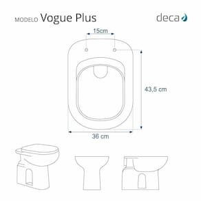 Compatível para uso em vaso sanitário Deca modelo Vogue Plus com ou sem caixa acoplada.